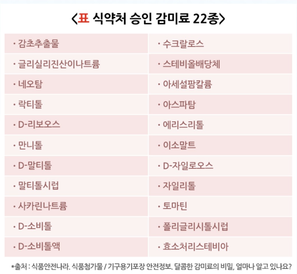 나. 식약청 승인 대체 감미료