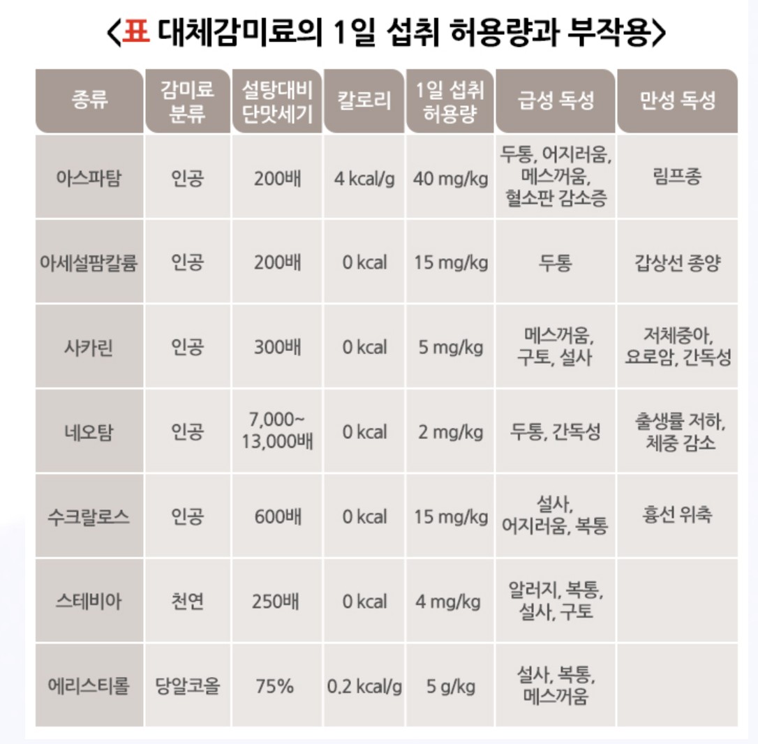 다. 대체 감미료 1일 허용량과 부작용